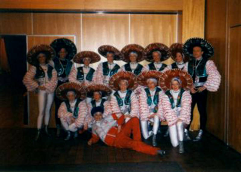 Mexiko - das Land der Azteken - lieferte uns in diesem Jahr Ideen für einen Schautanz, mit dem wir 1983 schon auf dem Siegertreppchen standen und 1984 sogar Deutscher Meisterwurden.Wunderschöne Sombreros - vom fernen Kontinent für uns eingeflogen - prachtvolle Kostüme waren das i-Tüpfelchen eines wunderschönen Tanzes, bei dem die fetzige Musik "Mexiko" von den LesHumphreys zum Schluss nicht fehlen durfte.